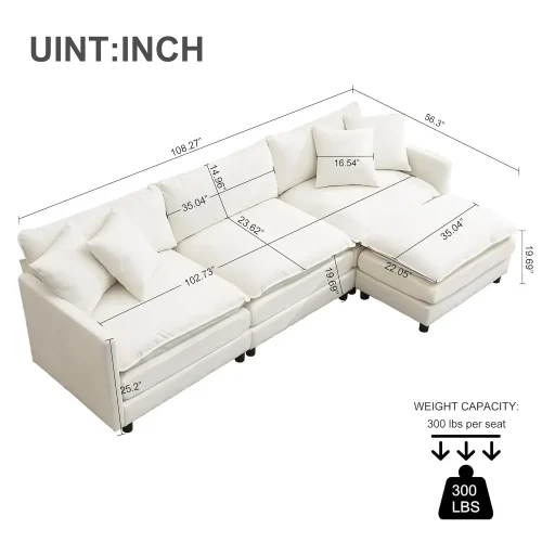 108″ Cloud Sectional Couches for Living Room,Convertible L-Shape Couch with Ottoman,3 Seater Modular Sectional Sofa, Customized